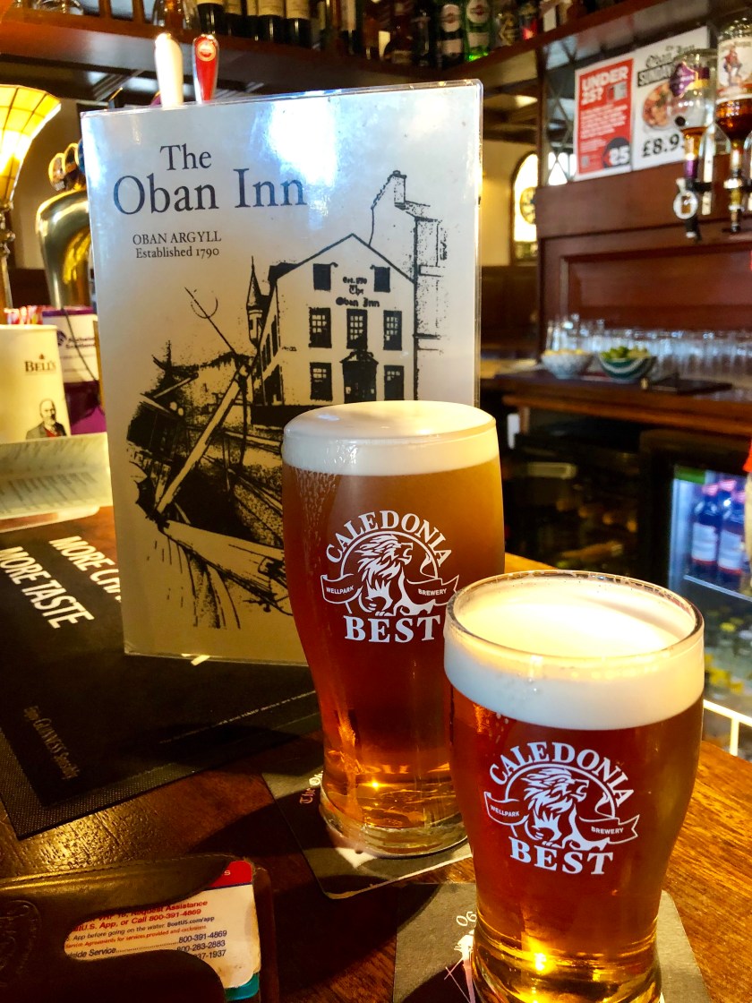 Good long day. We woke up in our European sized room (Brad calls it, excuse me, pardon me, room) and made for a quick breakfast before a Scotch whiskey tasting. When in Rome!Our guide at the Oban distillery was very precise, and we learned a lot. Like Oban is part of a huge conglomerate (Diageo), and that they buy their barley “mostly” from Scotland, and they make a sweeter version for the American market. Not as quaint as a small distillery from 1792. Just another link in the chain. Still it was great to see.