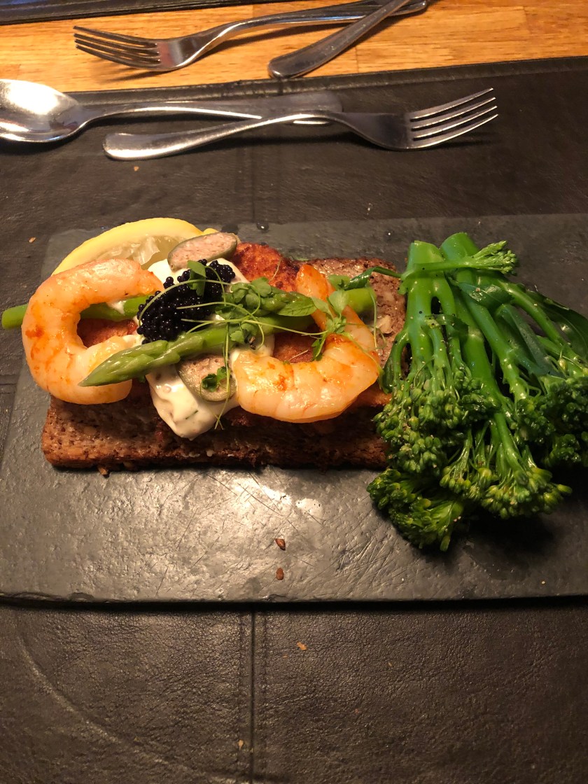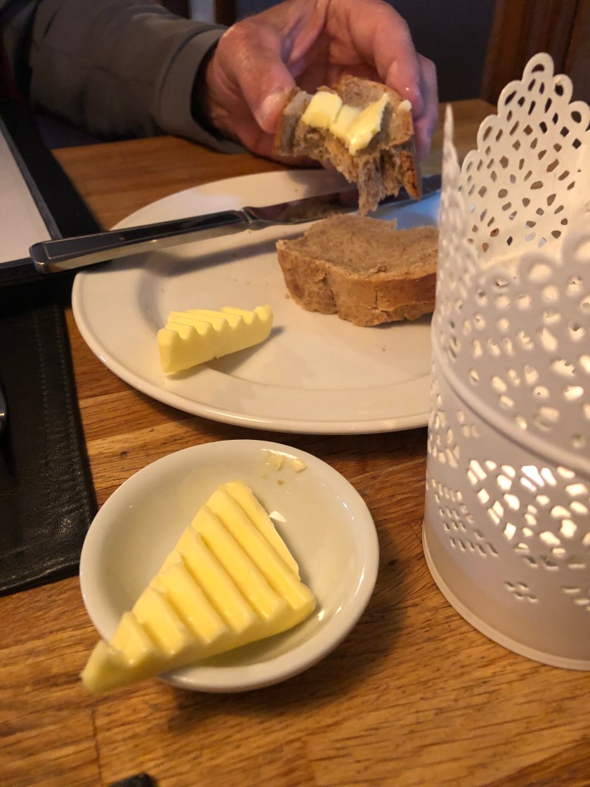 Food was wonderful, pacing slow, we have to get used to European long dinners. Everything excellent — not your grandmother’s Scotland. Bread and butter here is sublime!