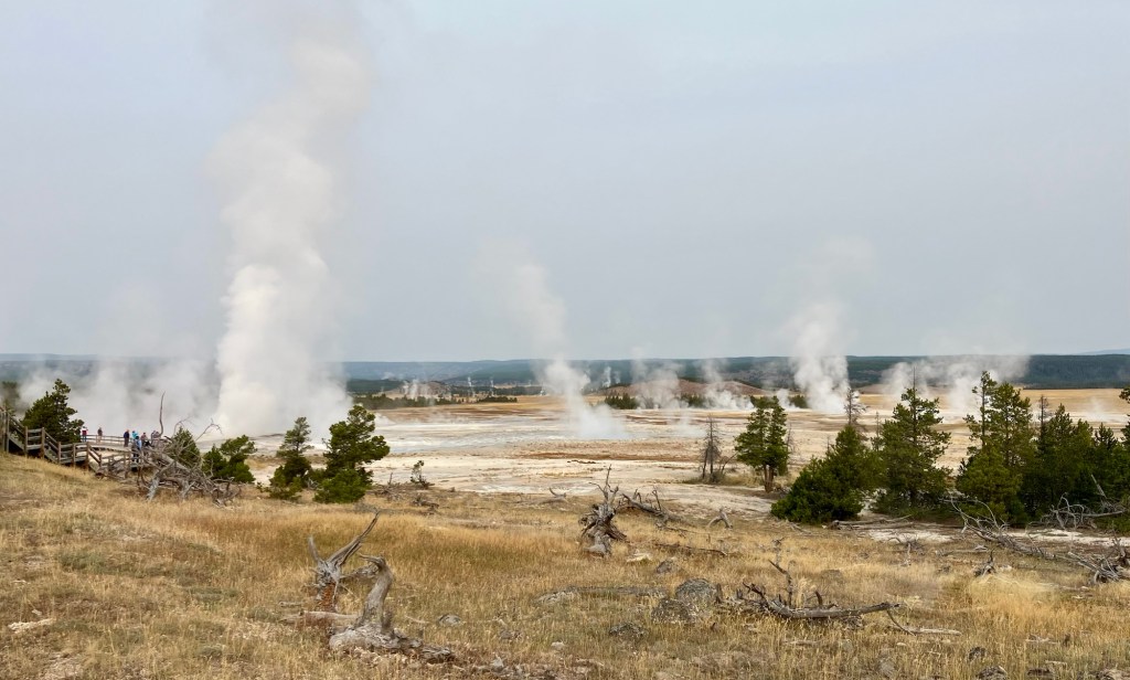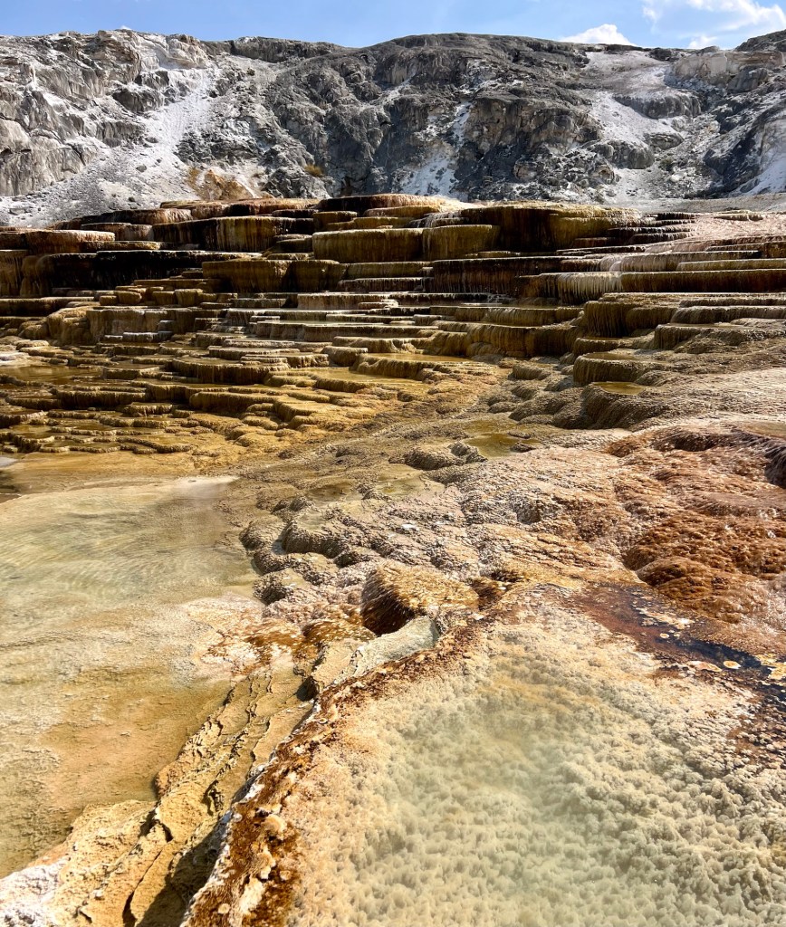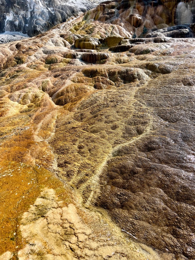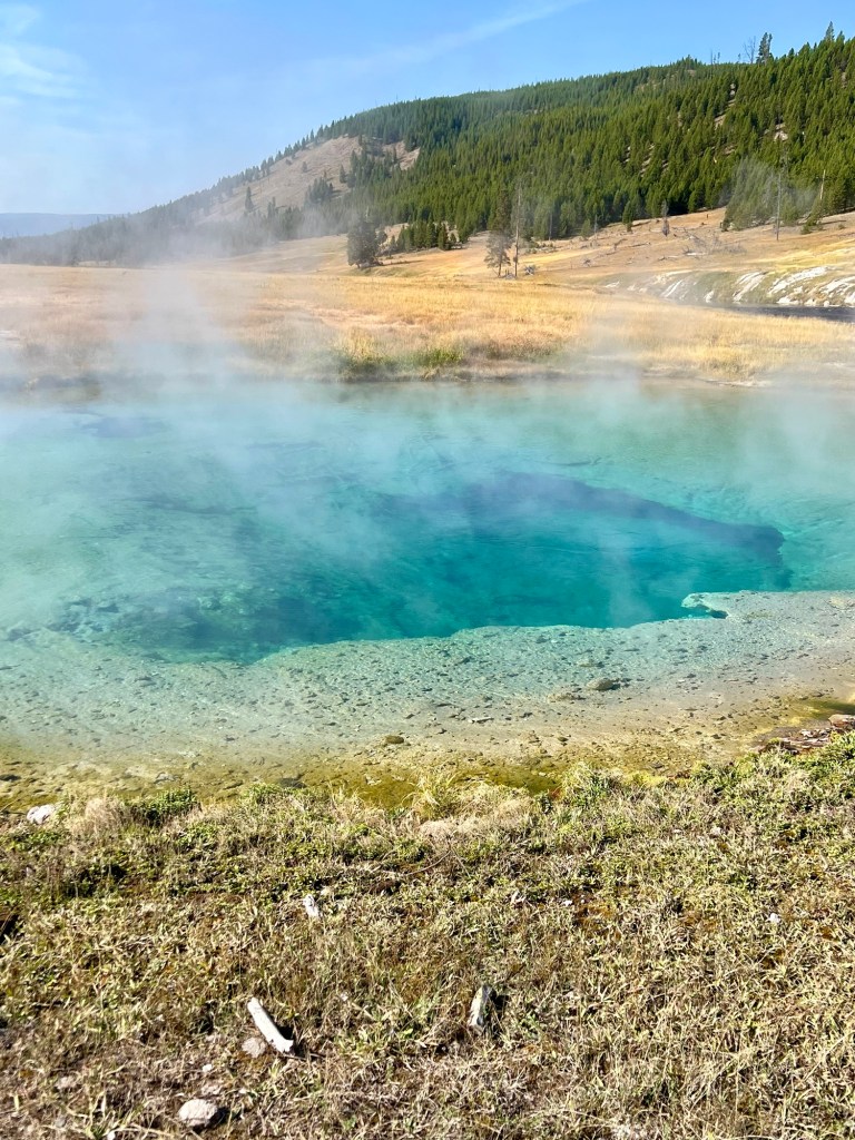 A geologist I’m not, but even I can appreciate the boiling, roiling, geo thermal action that encompasses this part of the park. We started early on a crisp morning here. We hiked around small geysers, mud pots, and hot springs. The pictures won’t do it justice.