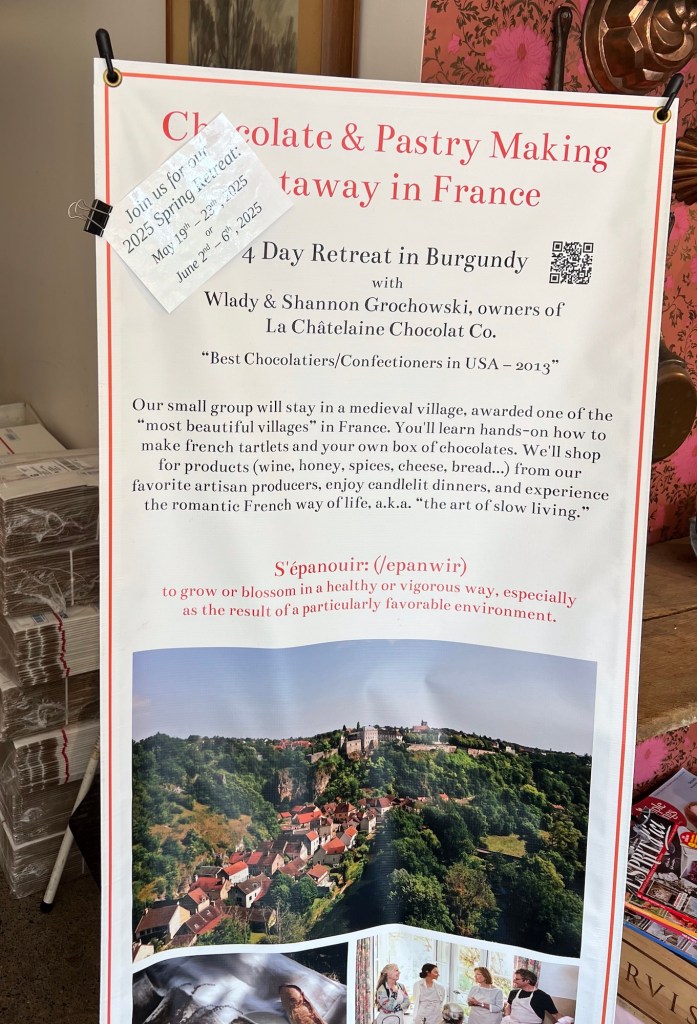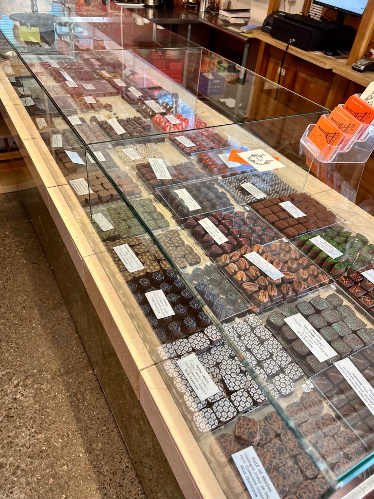 The high school boy who waited on me was a delight. The chocolates are all made on site and the owner is French. We sat and sampled and bought treats for our trip. What about a trip to France with this wonderful couple next year? Who’s with me?