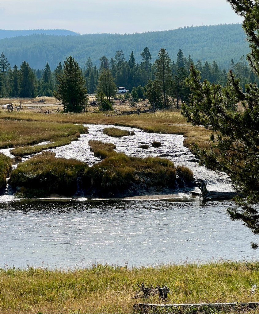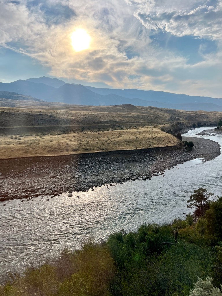 We hobbled down to the main Yellowstone Visitor Center and sucked up some air conditioning and made our way to our hotel. After a shower and a rest we could appreciate the rushing river right below us and the elk on the opposite shore.