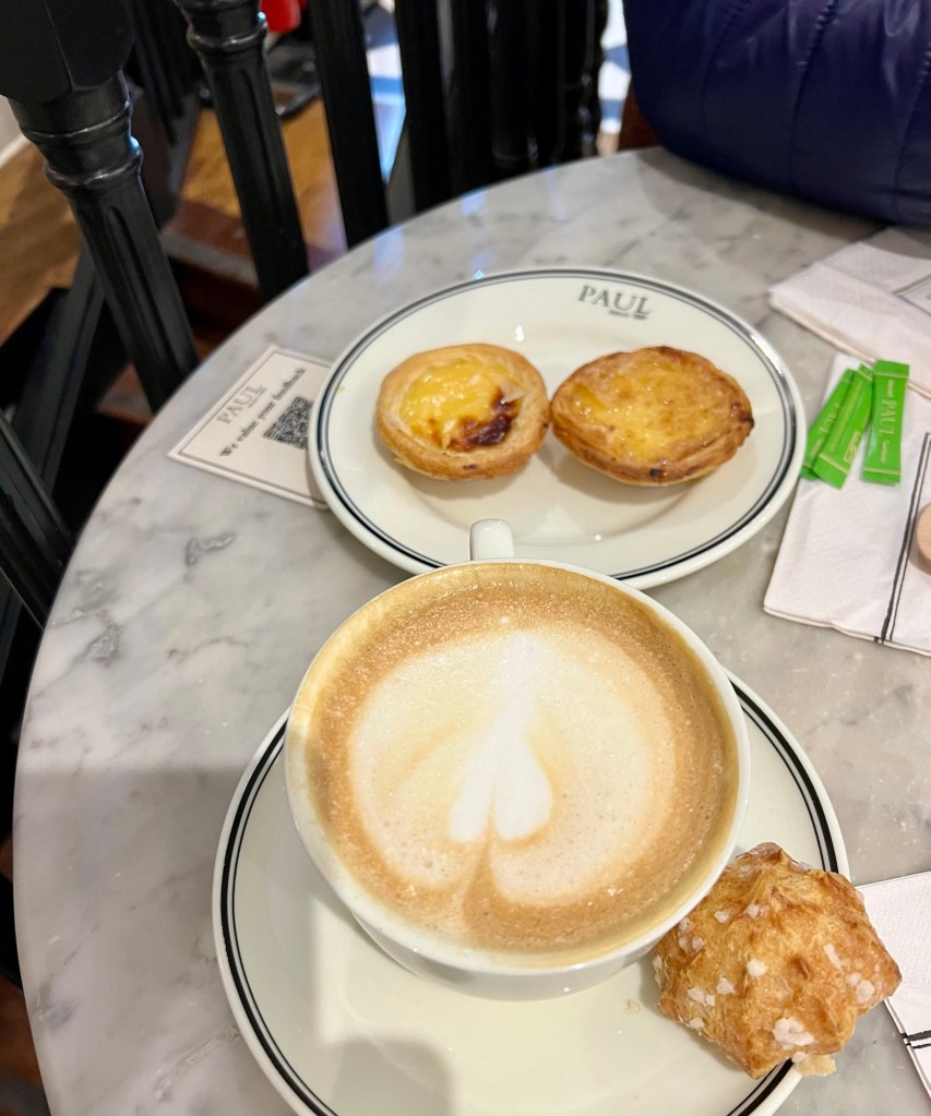 We washed our faces and headed for coffee. We didn’t brave Ottolenghi today in our sleepless state, but settled on Cafe Paul for my very favorite Pastel de Nata.