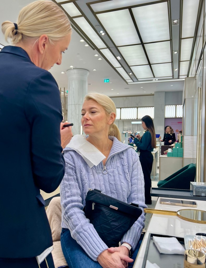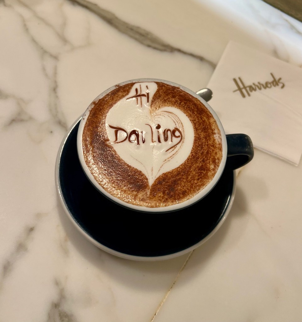 Harrrods was on our list, and it was delightfully quiet so we decided to do makeovers. Had a lovely soul from Cle de Peau give us a once over. Then a fancy cappuccino. Such fun.