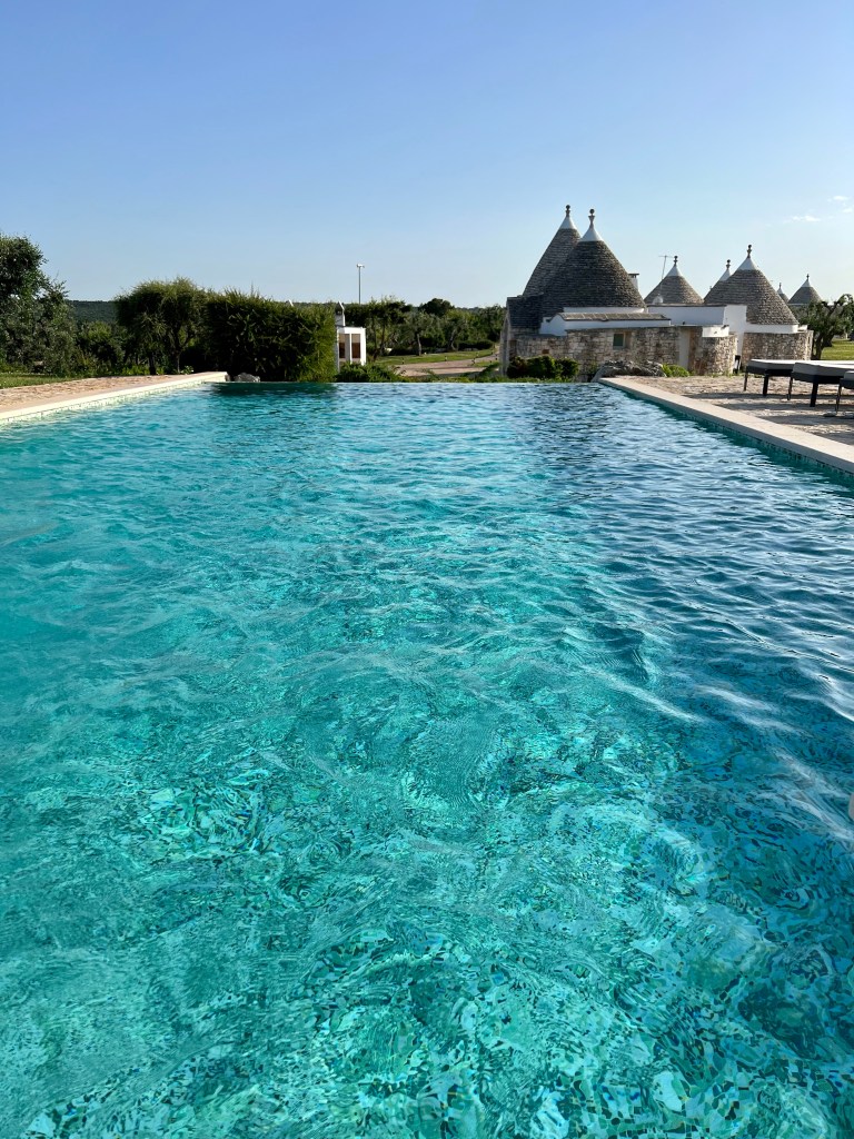 After a nap we decided to go for a swim in the late afternoon sun. The zero clearance pool overlooks the valley and a few small Trulli that have been here for hundreds of years. There is a peace here and a natural beauty that sort of sweeps you away.