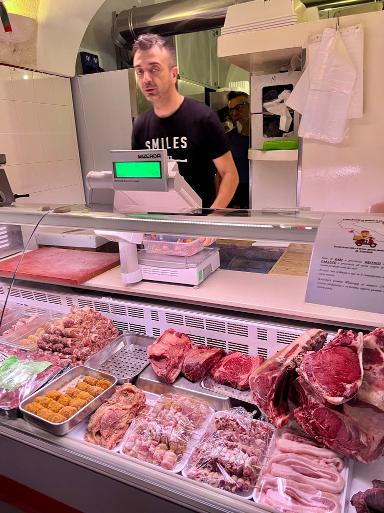 Before breakfast we got in the car and decided to see the surrounding towns, Alberobello, Locorotondo and Cisternino. Each were beautiful and had their own personalities. Alberobello is the Taormina of Puglia — Disneyish, lots of tchotchkes, and perfectly restored Trulli by the hundreds. It was lovely, but a bit manufactured. Locorotondo is a precious little town built in a circle. Cisternino has a real Southern Italian vibe with tremendous little restaurants and a very earthy food scene.