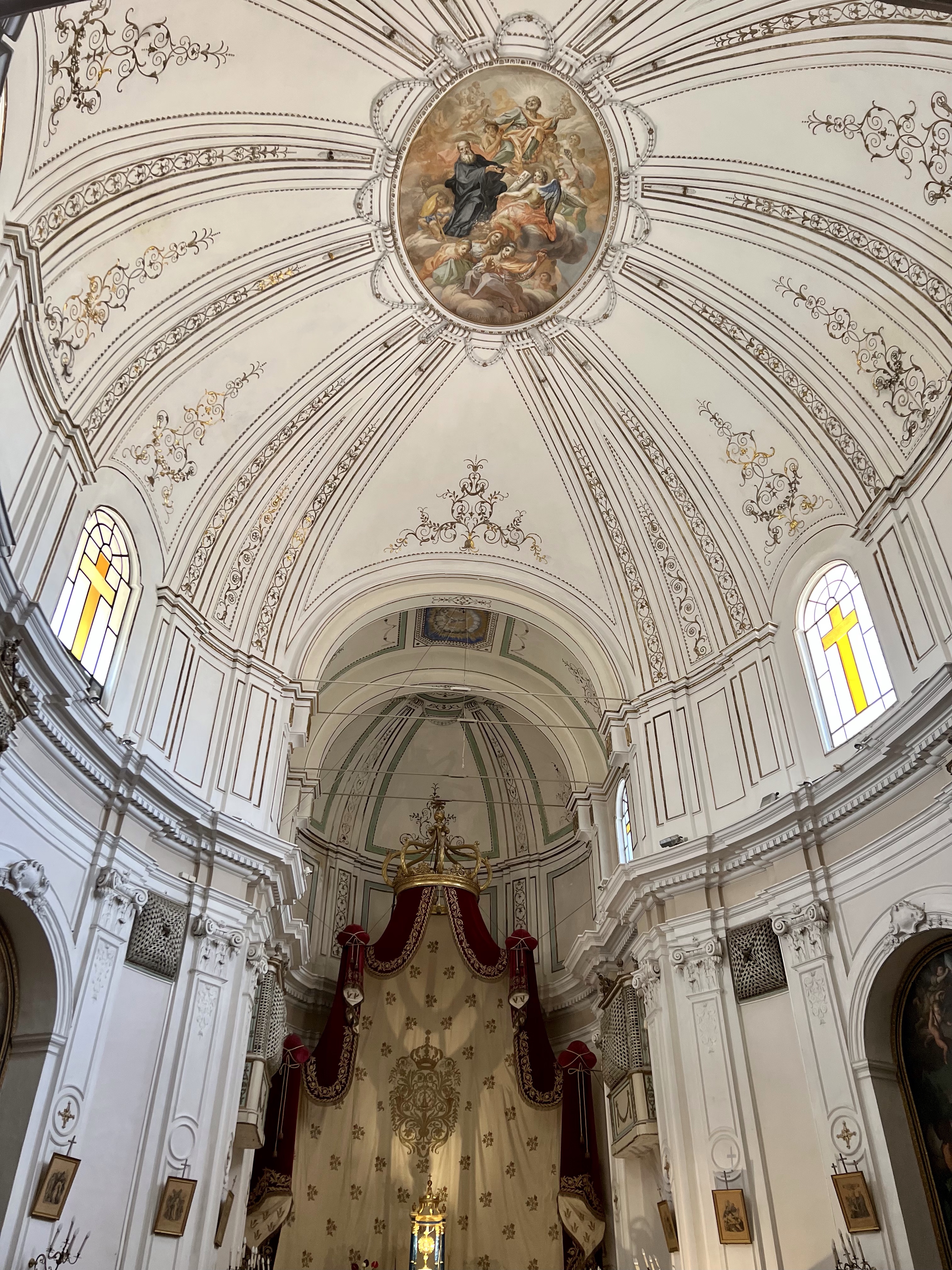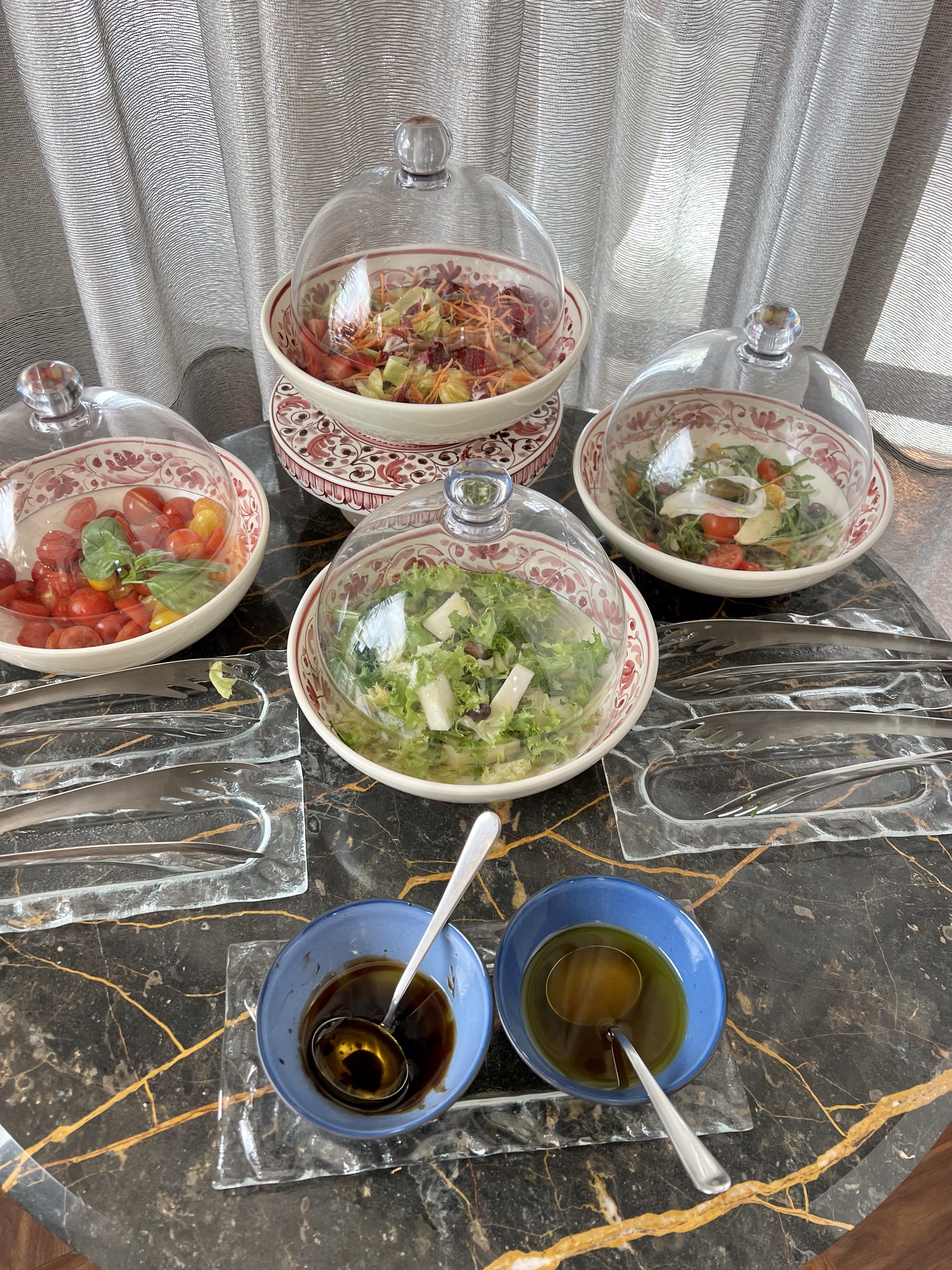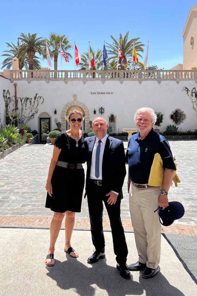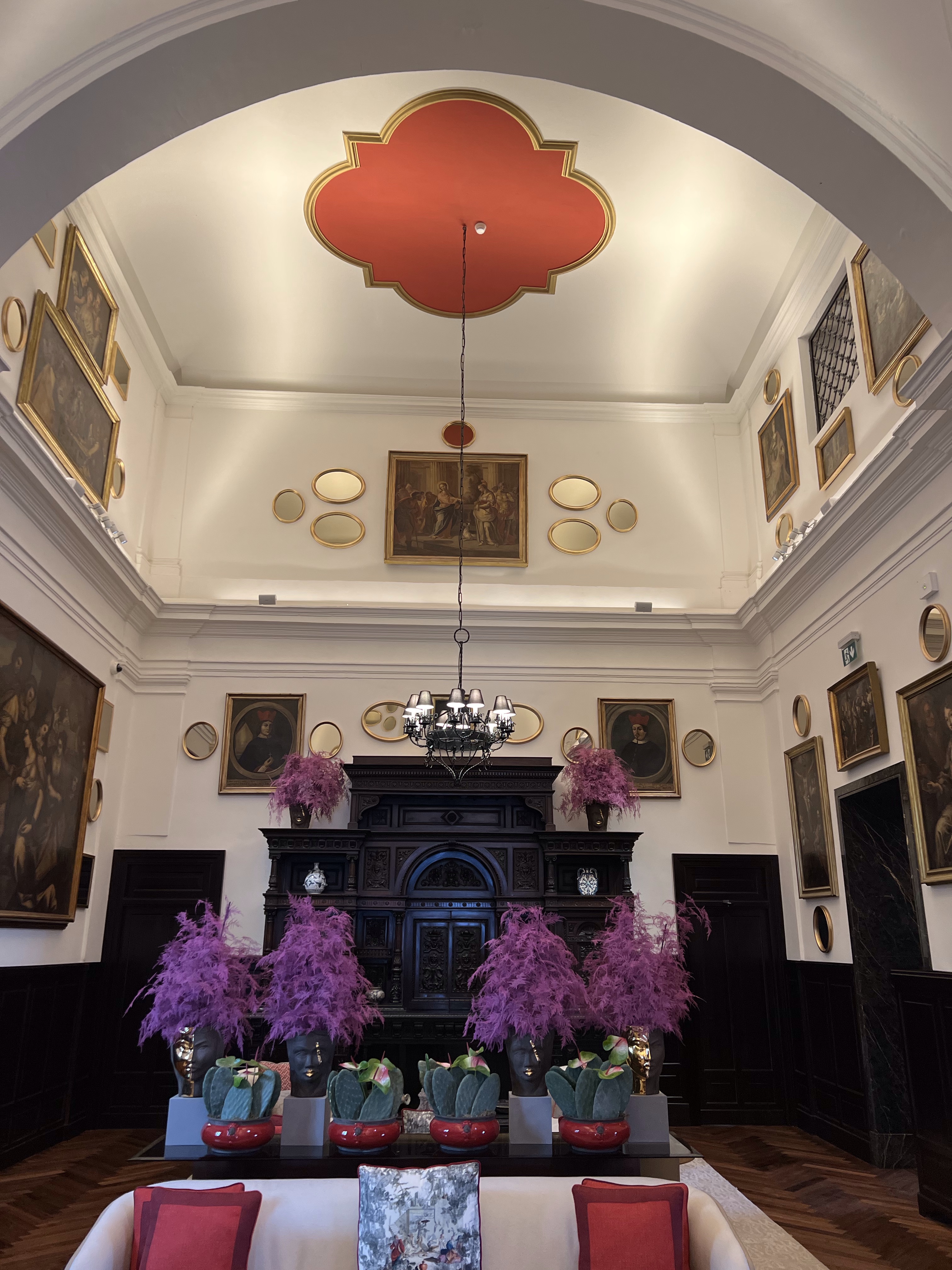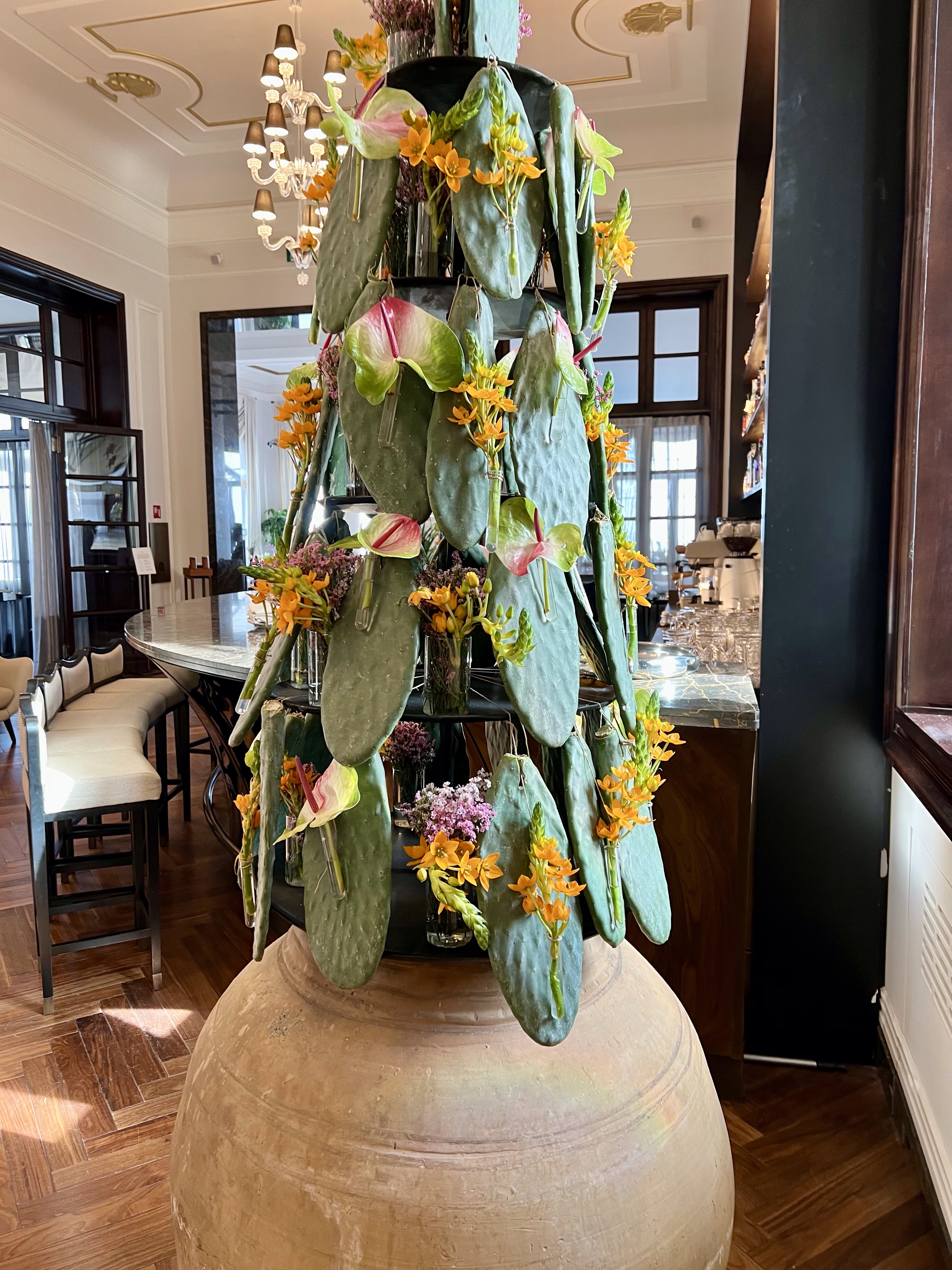 So here are some photos of the hotel. It doesn’t do it justice. There are cloisters for silent meditation, medieval staircases, a courtyard with dripping bougainvillea, and the staff in elegant Italian outfits, and gardens and vistas at every turn. Trees dripping with fruit, flowers in vibrant colors, and a softness to all of it.