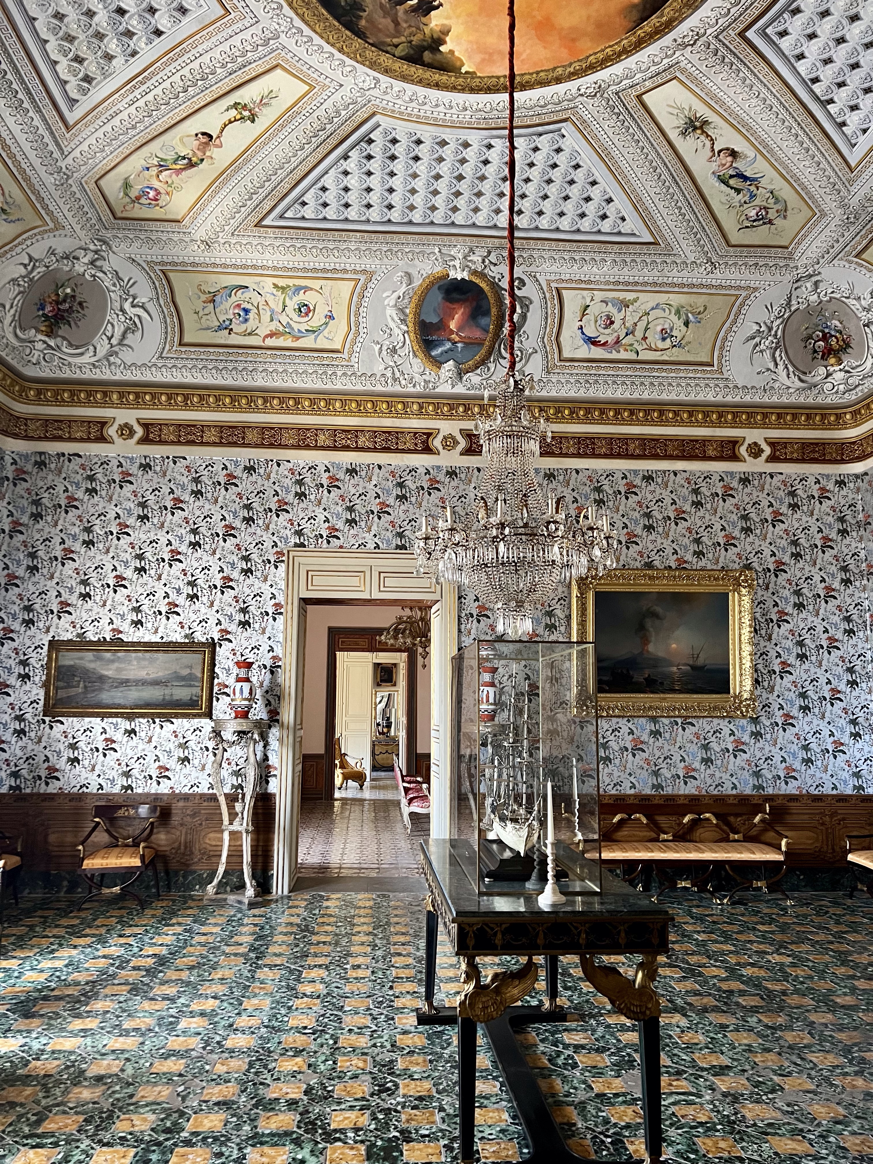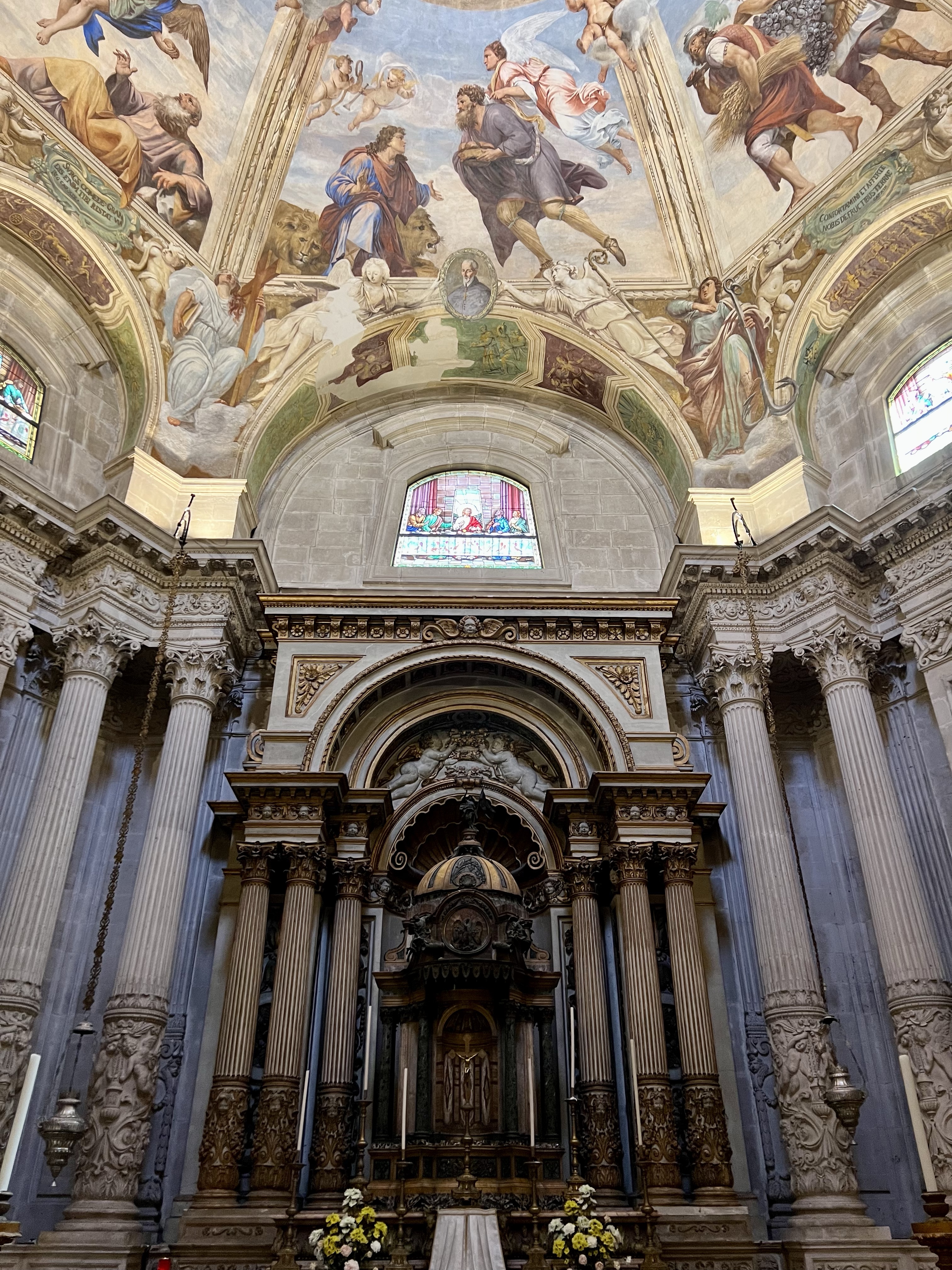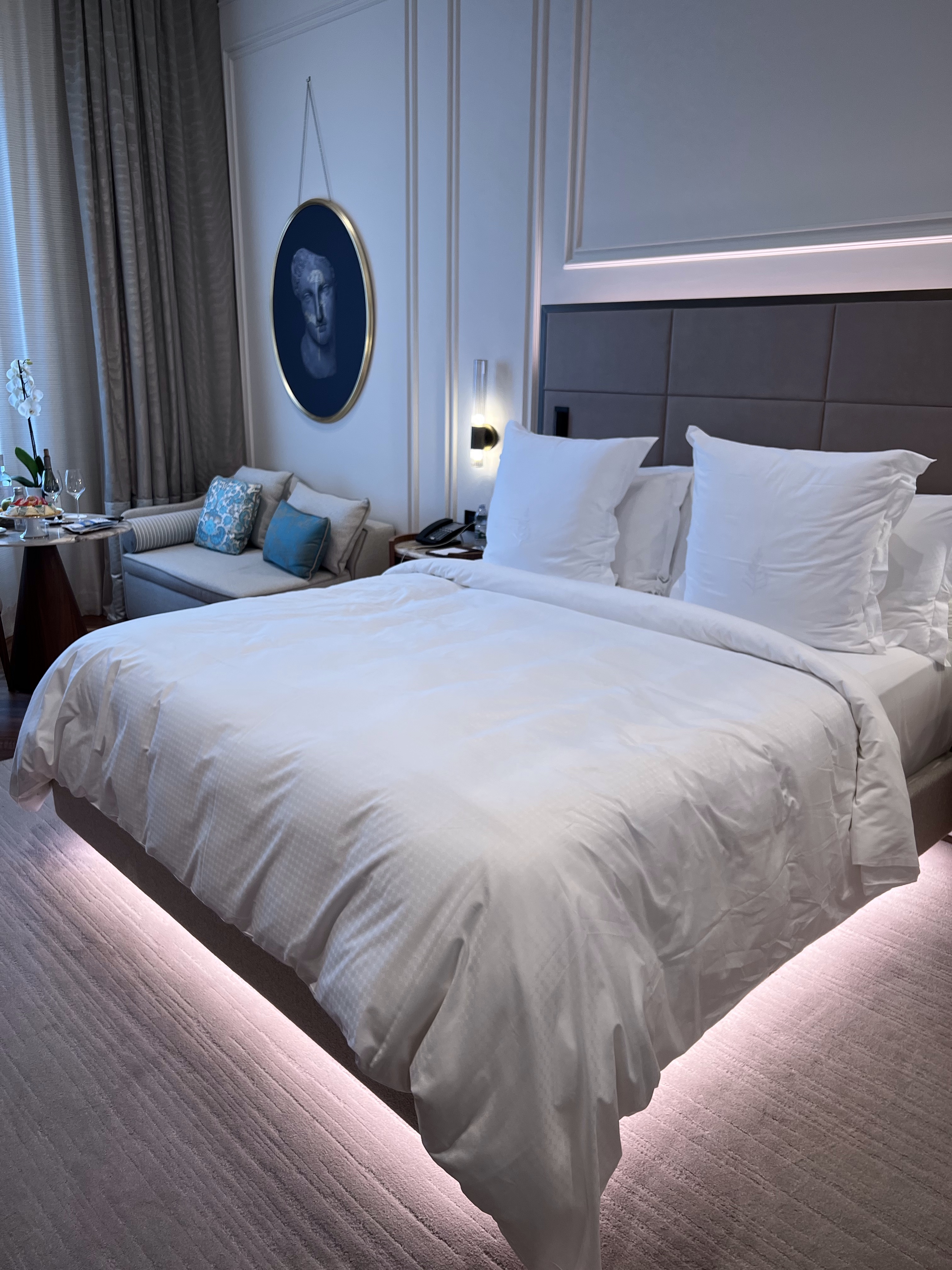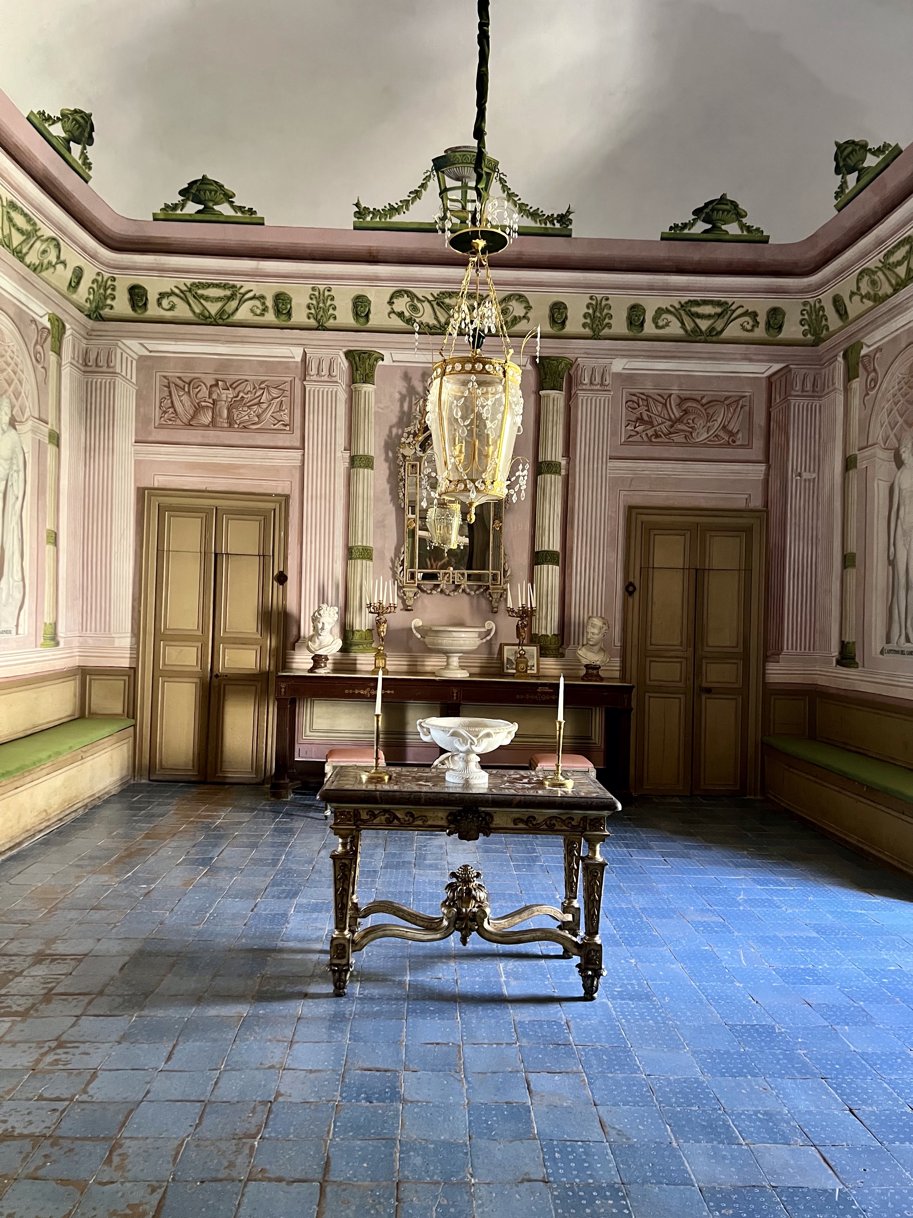 So here are some photos of the hotel. It doesn’t do it justice. There are cloisters for silent meditation, medieval staircases, a courtyard with dripping bougainvillea, and the staff in elegant Italian outfits, and gardens and vistas at every turn. Trees dripping with fruit, flowers in vibrant colors, and a softness to all of it.