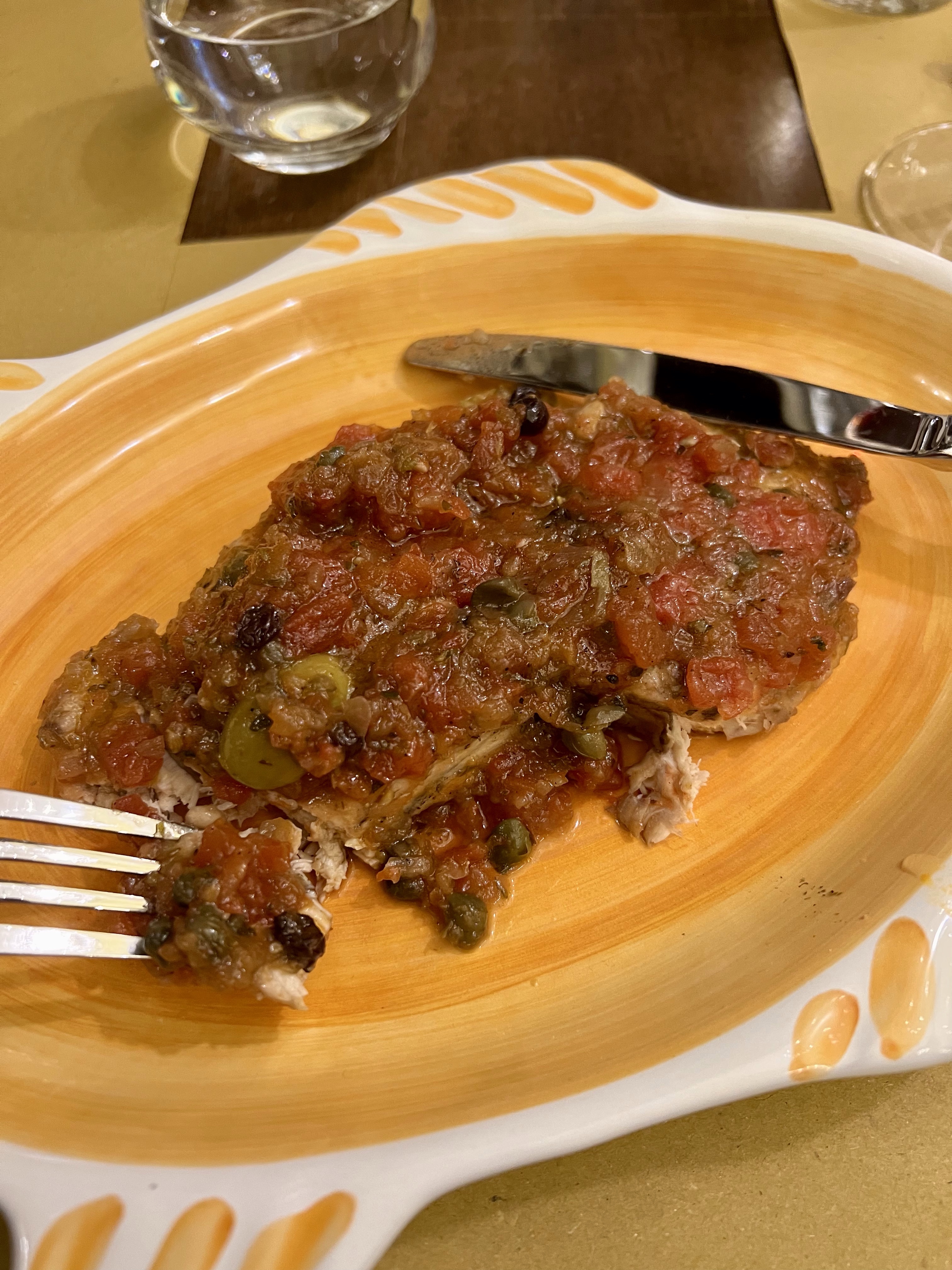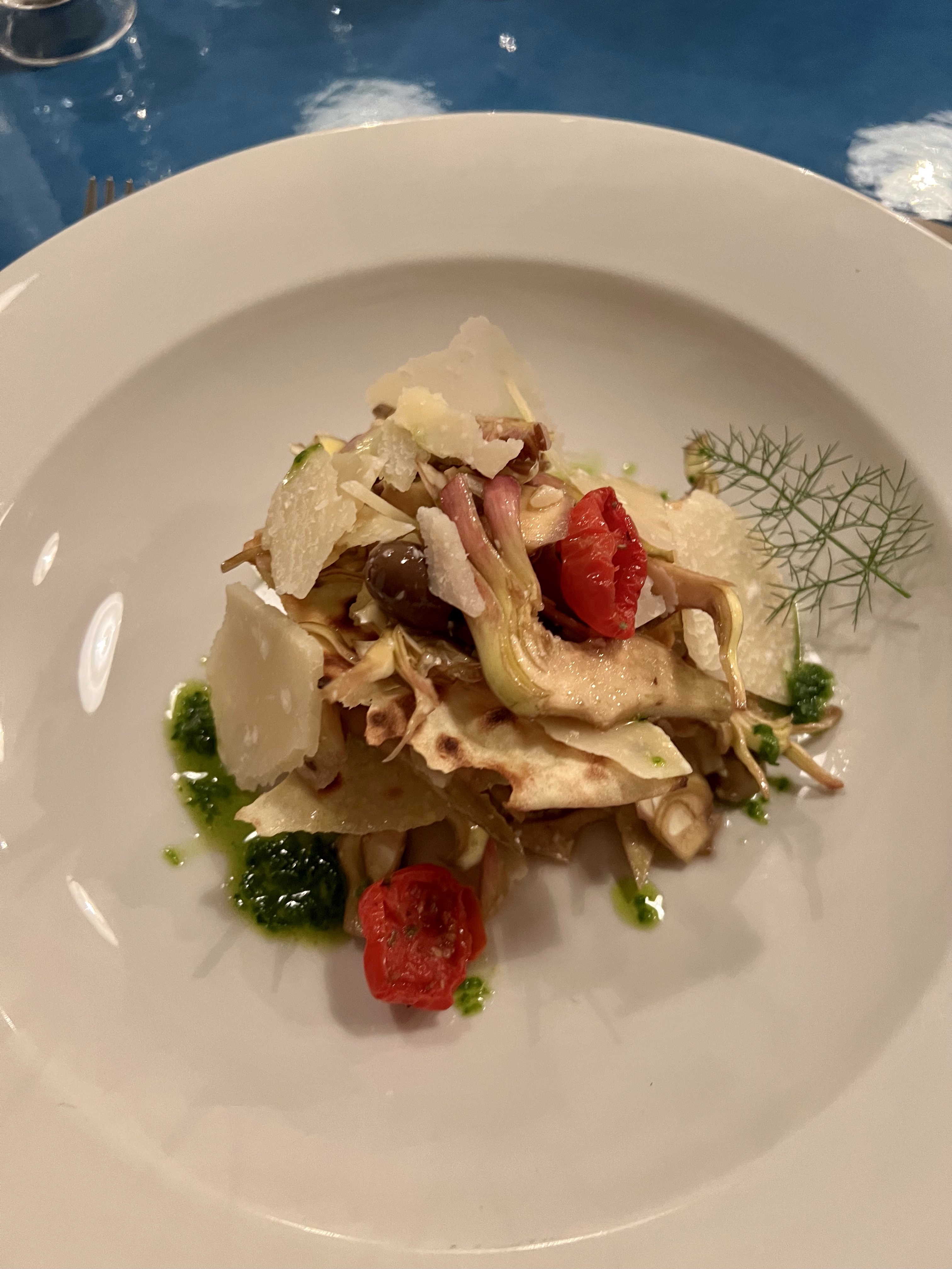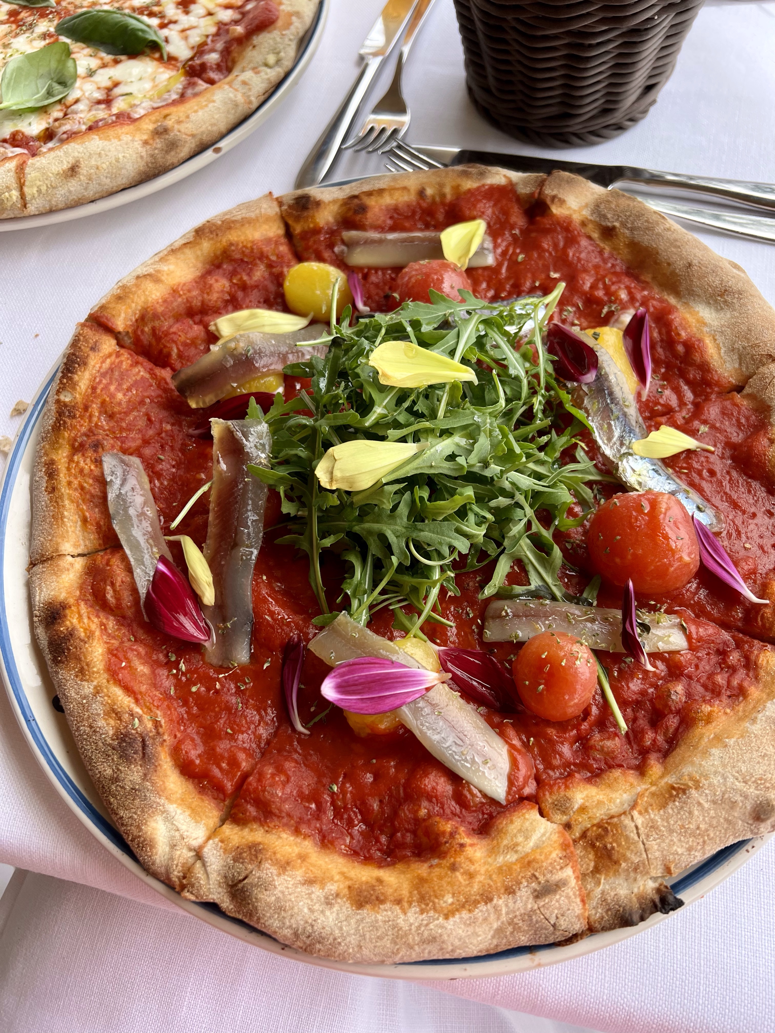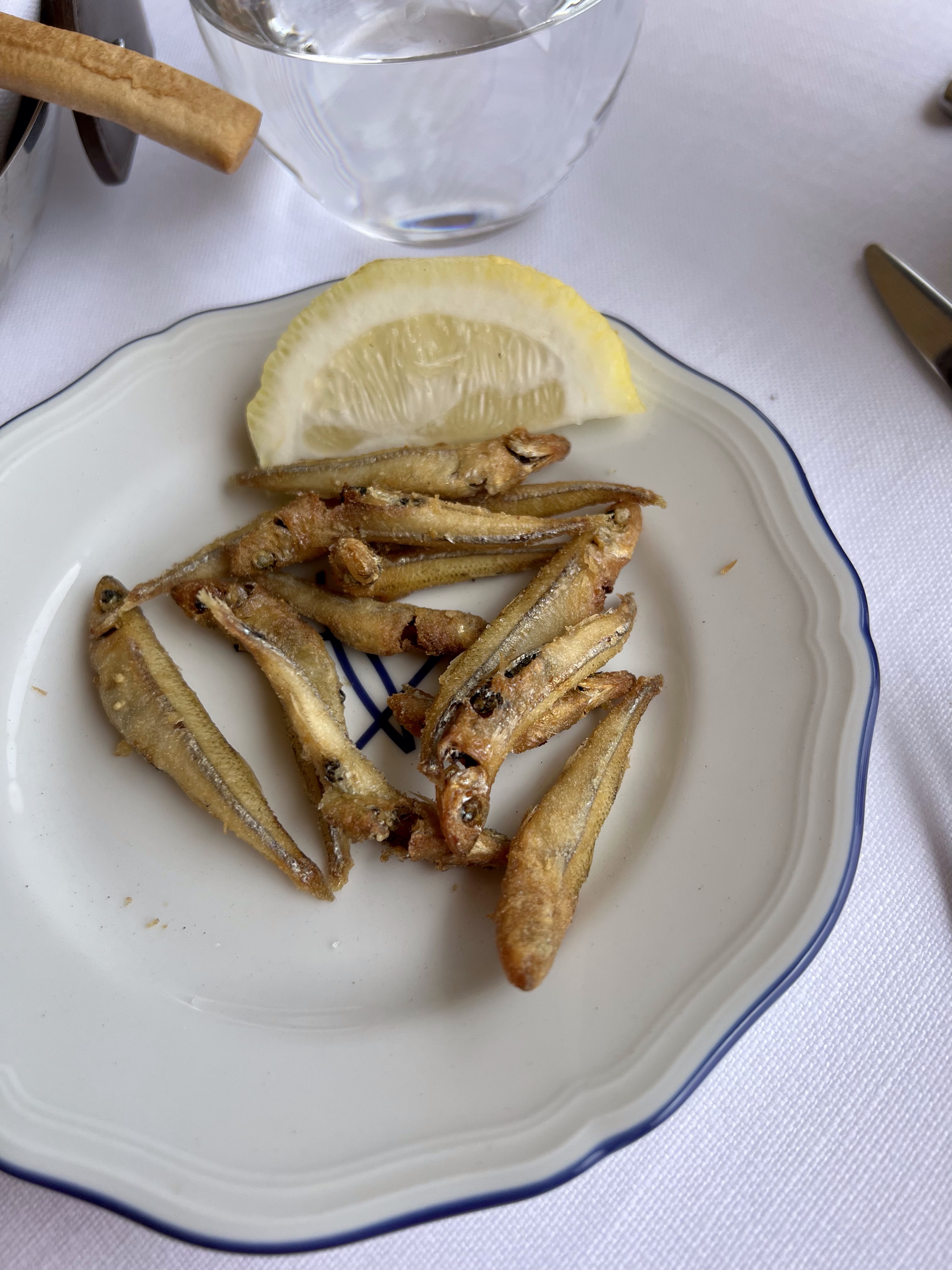 And then back through the labyrinth that is Taormina. Hundreds of restaurants, shops and alleys. Hoards of tourists and lots of tchotchkes. We escaped back to the tranquility of the hotel and let Francesca serve us our first (and perfect) pizza in Sicily. of course the chef sent out some fried anchovies to start.