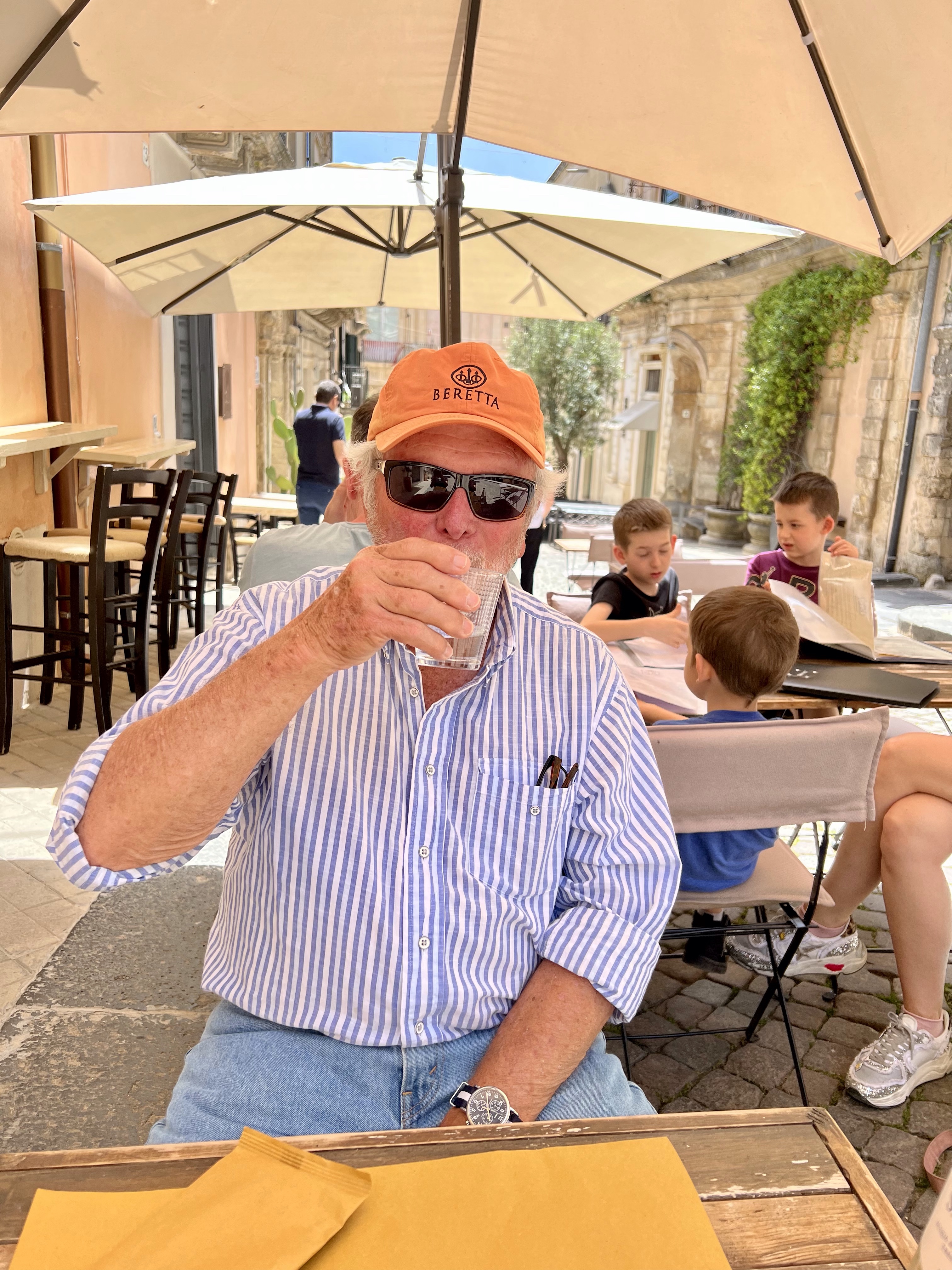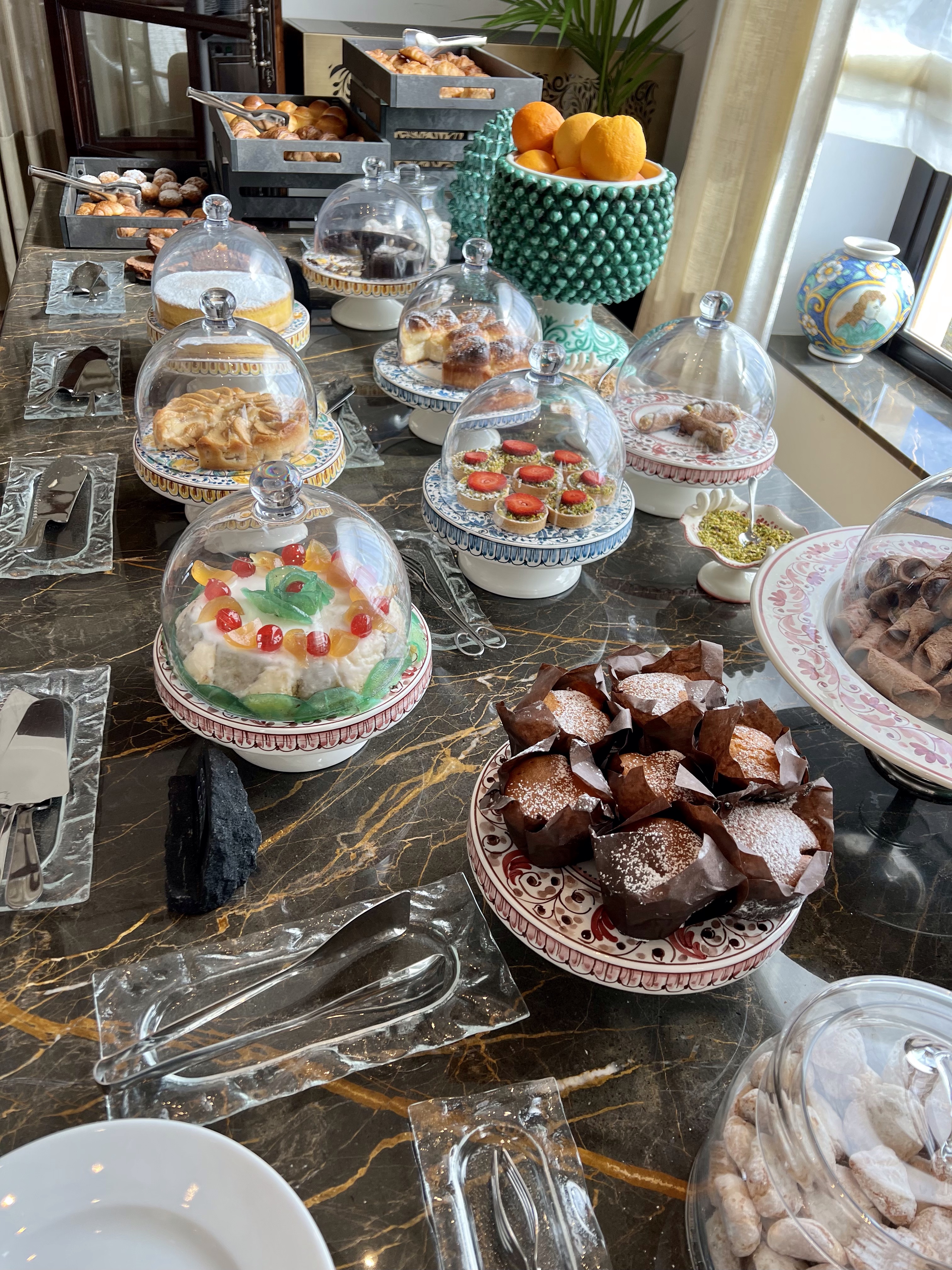 How can you complain when this is breakfast? The last photo is of almond granita and brioche — a Sicilian standard breakfast. I know. And yes, Brad had waffles with maple syrup.