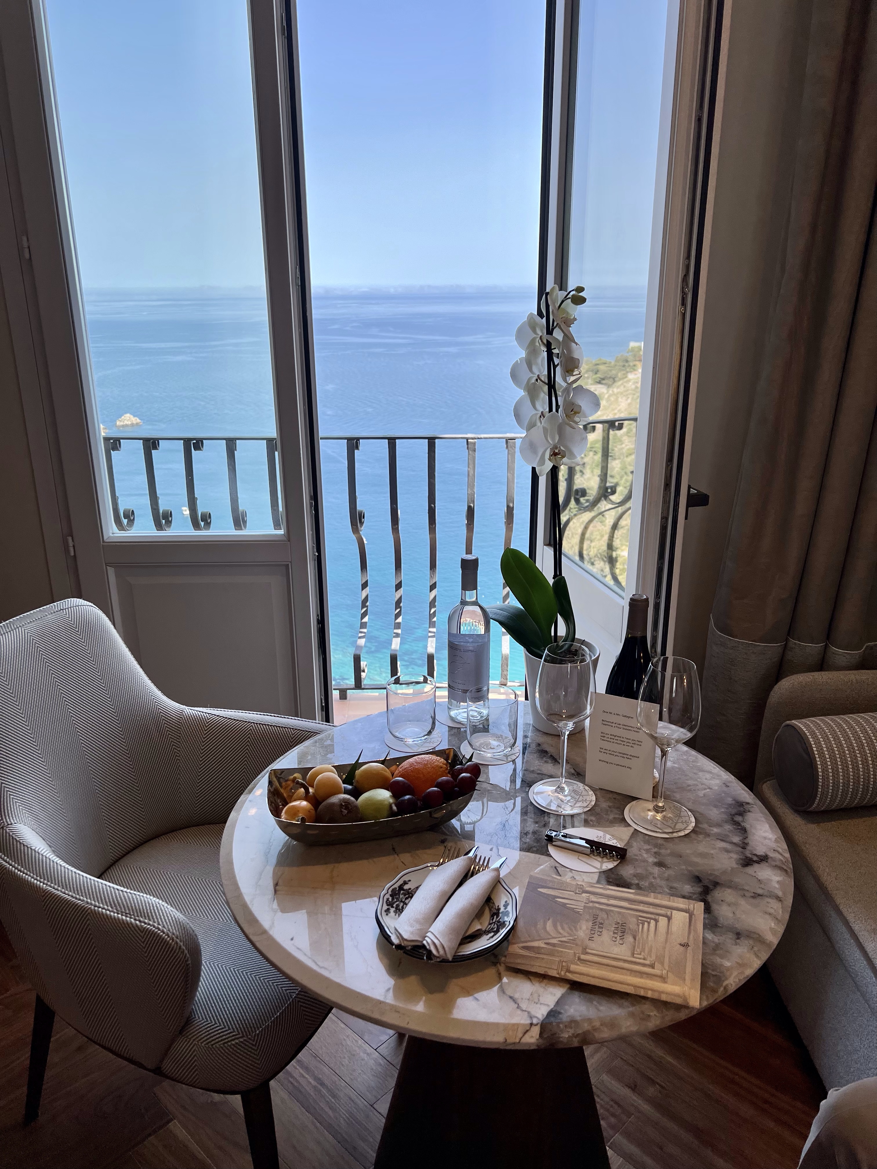 We slept the sleep you have when there is nothing on your mind but peace and happiness. Disney this may be, but it’s a really good Disney. Taormina has been designed by the Italians for American pleasure. English is spoken everywhere, with a lovely accent, but everywhere. If you get concerned about not speaking the language, fear not in Taormina. I find myself saying thank you instead of grazie. But everyone makes you feel like they are there for your pleasure, so I’ve been lulled into it.